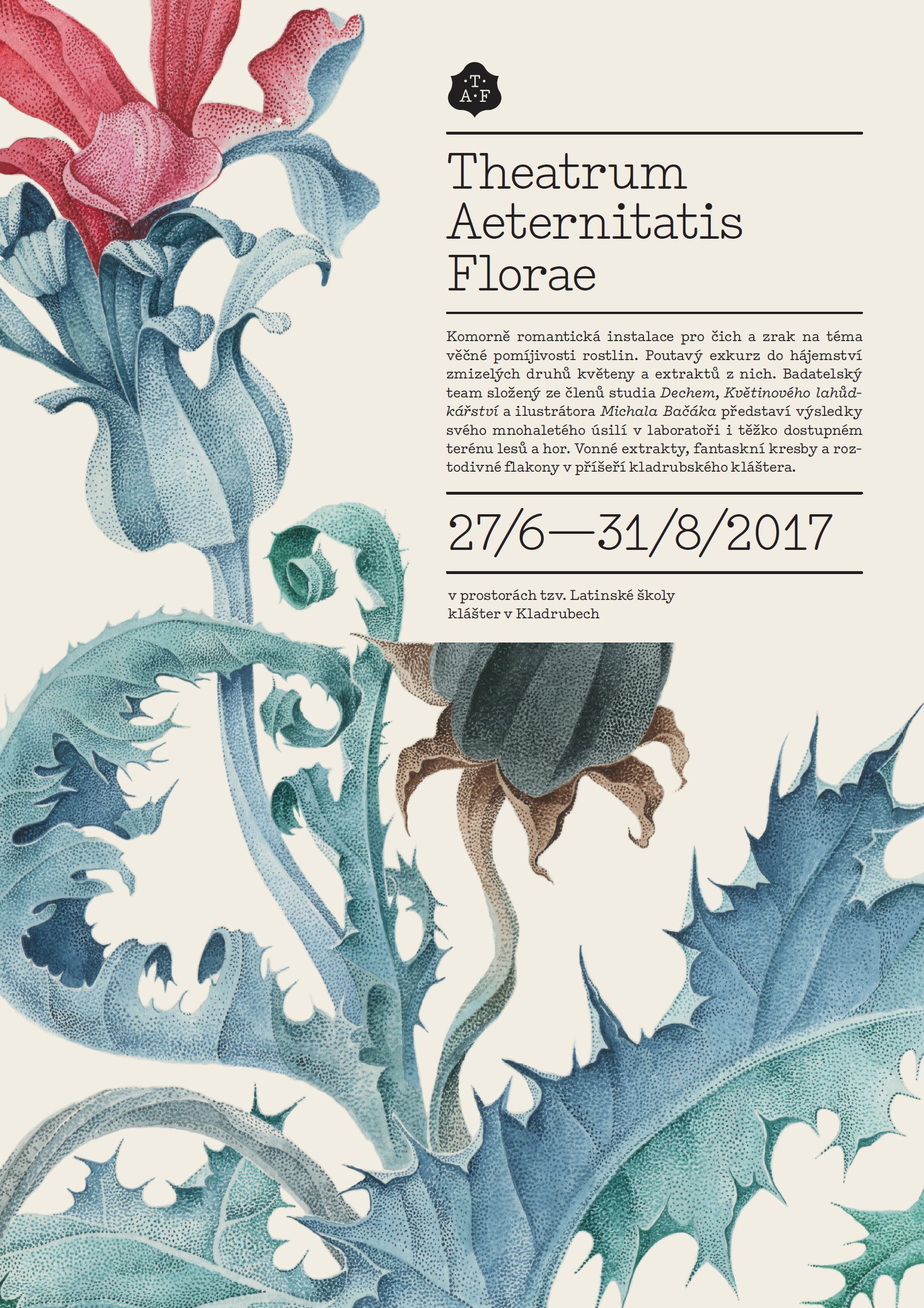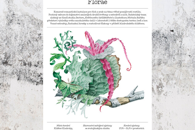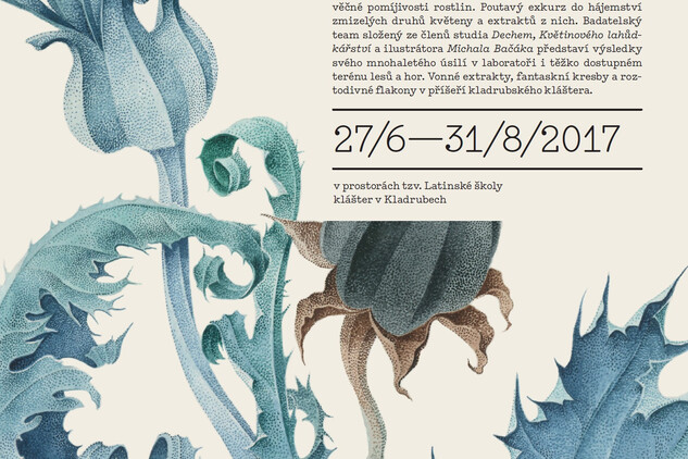 Poutavý exkurz do hájemství zmizelých druhů květeny a extraktů z nich. Badatelský team představuje výsledky svého mnohaletého úsilí v laboratoři i v těžko dostupných terénech lesů a hor. Vonné extrakty, fantaskní kresby a roztodivné flakony v příšeří kladrubského kláštera.